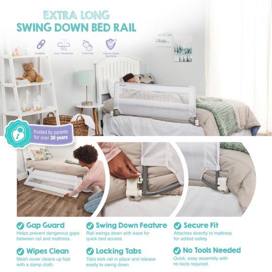 Regalo Extra Long Swing Down Bed Safety Rail for Kids and Toddlers, Metal Frame, White