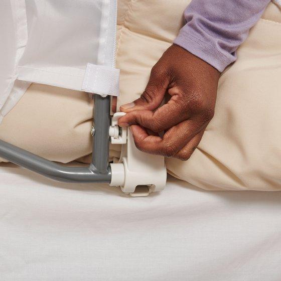- EASY TO SET UP: No tools are required. The rail cover is machine washable. The durable nylon mesh fabric that encloses the steel frame, is soft to the touch and comfortable for your little one
