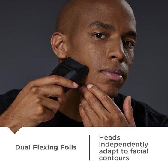 - Dual flexing foils: Each foil adjusts independently to maintain close contact across facial curves.