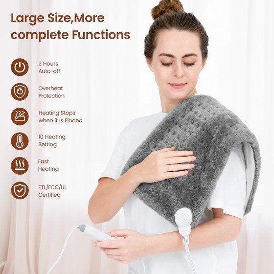 RENPHO Heating Pad for Back Pain Relief & Period Cramps, HSA FSA Eligible, Heat Pad for Neck and Shoulder,12"x24",Christmas Birthday Gifts for Women Men, Gray