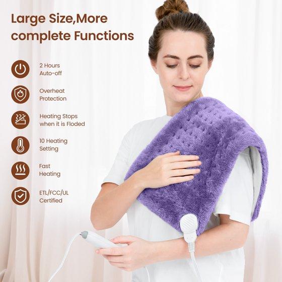 RENPHO Heating Pad for Back Pain Relief & Period Cramps, HSA FSA Eligible, Heat Pad for Neck and Shoulder,12"x24",Christmas Birthday Gifts for Women Men, White Purple