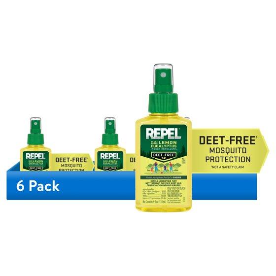 (6 pack) Repel Plant-Based Lemon Eucalyptus Insect Repellent, DEET-Free Pump Spray, 4 Ounces