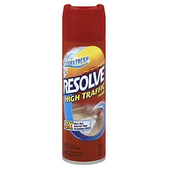 1 Remove spray cap from Resolve High Traffic Foam 22 oz can. Shake the can vigorously before each use. If the can is already in the gadget, remove and shake again. 2. Insert can into the gadget and rotate clockwise until it gently clicks into the locked position. 3. To remove the can, rotate counterclockwise into the unlocked position and gently pull upwards. 4. Pull trigger to dispense foam, then brush the foam into the carpet. When dry, vacuum thoroughly to remove dried foam and loosened dirt. 5. Replace spray cap to can for standard use.