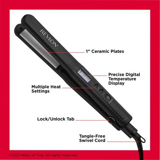 Revlon Perfect Heat 1" Ceramic Digital Flat Iron, Black