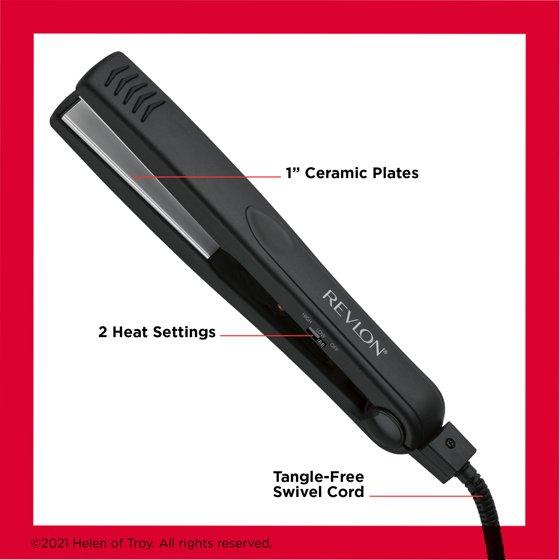 Elevate your styling routine with the Revlon Smooth and Straight Ceramic Flat Iron. Engineered for fast and efficient performance, this flat iron boasts ceramic-coated plates that evenly distribute heat, minimizing hair damage while ensuring smooth and shiny results. The 1-inch plates are designed to get close to your roots, allowing for ultra-straight, sleek styles reminiscent of salon treatments. Capable of reaching up to 400°F, the Revlon ceramic straightener offers quick styling so you're ready to dazzle in no time. With two adjustable heat settings, choose the optimal temperature for your unique hair texture. A convenient indicator light signals when the flat iron is powered on and at working temperature, simplifying your styling process.