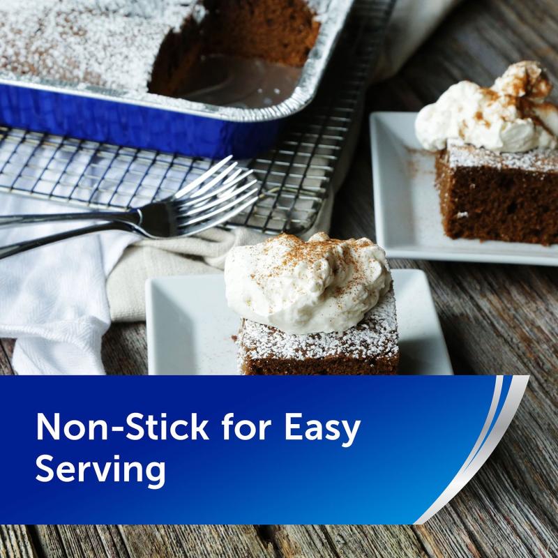 Reynolds Kitchens Aluminum Foil Dessert Pans with Lids make baking your cakes, brownies, and other pastry treats fuss-free and easy to store. Each 8" x 8" aluminum cake pan has a non-stick surface so you won’t need oil or spray to keep foods from sticking. Just pour the batter in and slide your cake right out of the pan after cooling. A snug-fitting, clear lid is included for each pan and makes transportation and storing food easy. The clear lid comes in handy to easily see what food is stored inside.