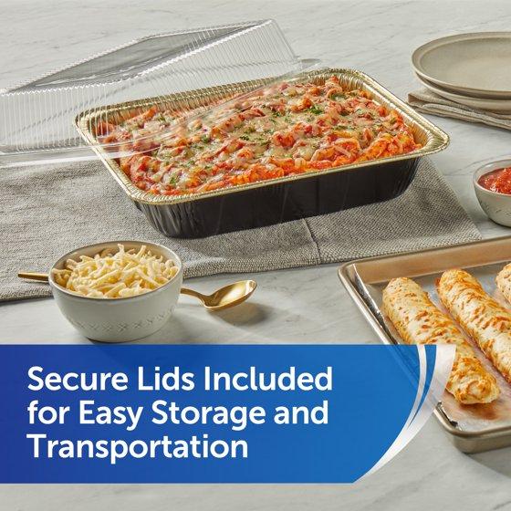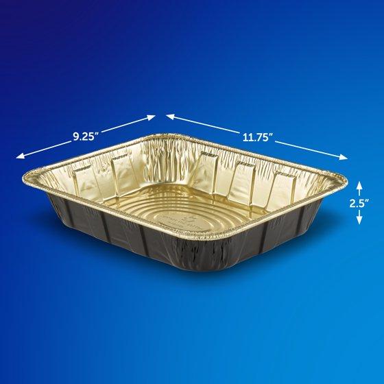 - Package Includes—Two (2) Reynolds Kitchens Heavy Duty Disposable Half Steam Table Pans with Lids, 11.75 x 9.25 x 2.5 inch, Black and Gold