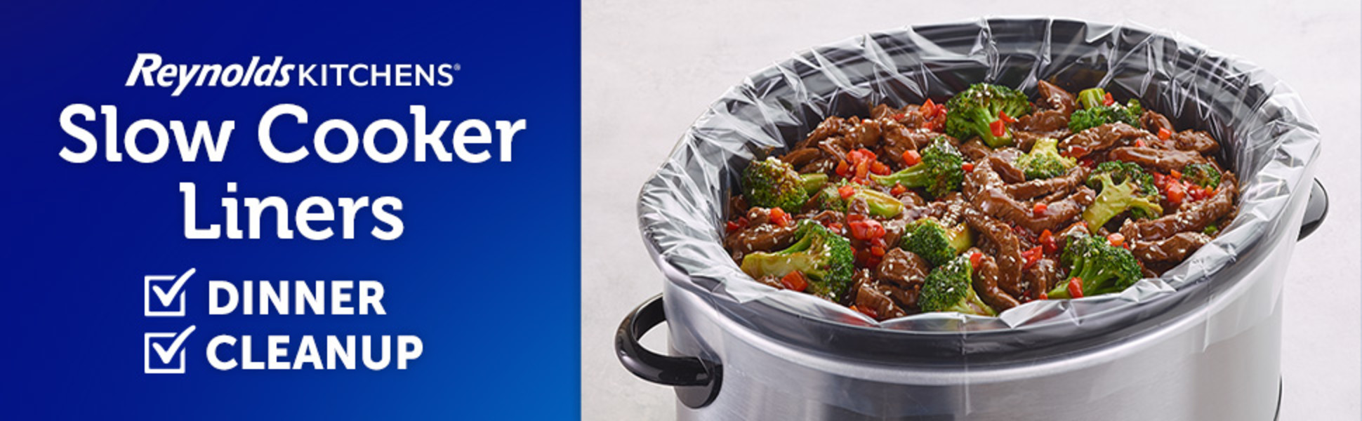- Make Meals Easy—Use a Reynolds slow cooker liner next time you make chili, pulled pork, pot roasts, soups & more to spend less time scrubbing & more time with your loved ones
