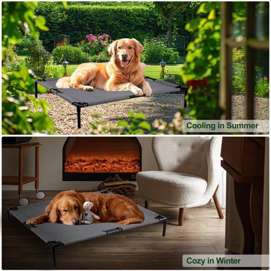 Reyox Original Cooling Elevated Dog Bed, Outdoor Raised Dog Cots Bed for Large Dogs, Chew Proof Standing Pet Bed with Washable Breathable Mesh, No-Slip Feet for Indoor Outdoor.The elevated pet bed brings cooling effects in hot summer.