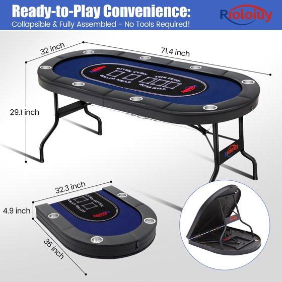 - 【No Install & Foldable Poker Table】Rioloiuy poker table without installation.Quickly to open the folding part,you can use it normally.Portable design saves installation time and is convenient to carry when you going out.If not used, the poker table can be folded to save space.Size is 71.4 "x 32 "x 29.1"(L x W x H)