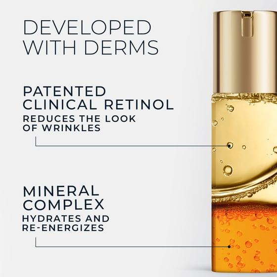 Water/Aqua/Eau, Cyclopentasiloxane, Glycerin, Tetrahydroxypropyl Ethylenediamine, Dimethicone, Dimethicone Crosspolymer, Ammonium Acryloyldimethyltaurate/VP Copolymer, Nylon-12, PEG-12 Dimethicone, Retinol, Ascorbic Acid, Magnesium Aspartate, Zinc Gluconate, Copper Gluconate, Allantoin, Tocopherol, Helianthus Annuus (Sunflower) Seed Oil, Hydrolyzed Rice Bran Protein, Caprylyl Glycol, Laureth-23, Laureth-4, Bisabolol, Pentylene Glycol, Butylene Glycol, Polyacrylamide, Ascorbyl Palmitate, Propanediol, Laureth-7, C13-14 Isoparaffin, Potassium Sorbate, Polysorbate 20, 1.2-Hexanediol, Hydroxyphenyl Propamidobenzoic Acid, Phenoxyethanol, Phenylpropanol, Citric Acid, Disodium EDTA, Farnesol, BHT, Fragrance/Parfum, Yellow 5 (CI 19140).