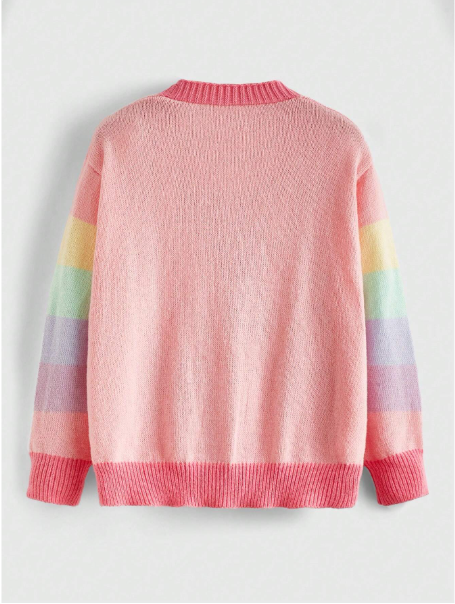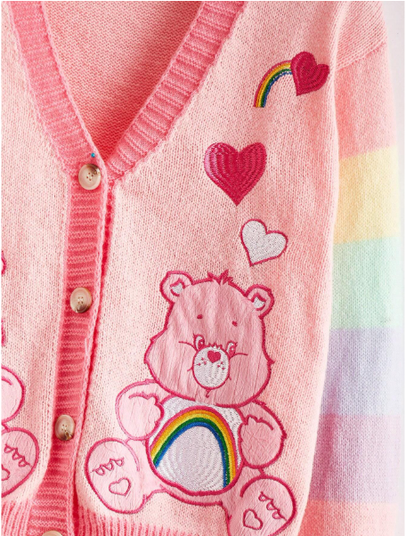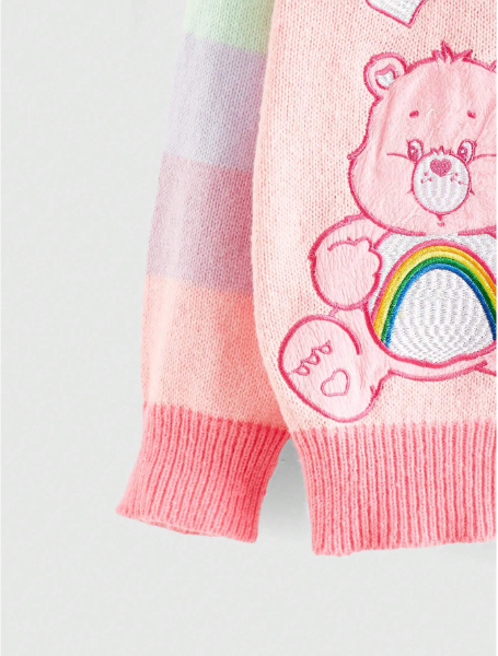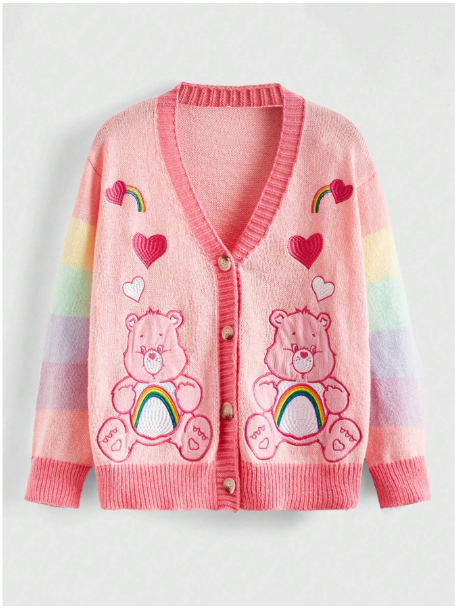 ROMWE X Care Bears Bear Patch Embroidered Colorful Sleeves Cute Romantic Plus Size Sweater Cardigan, School