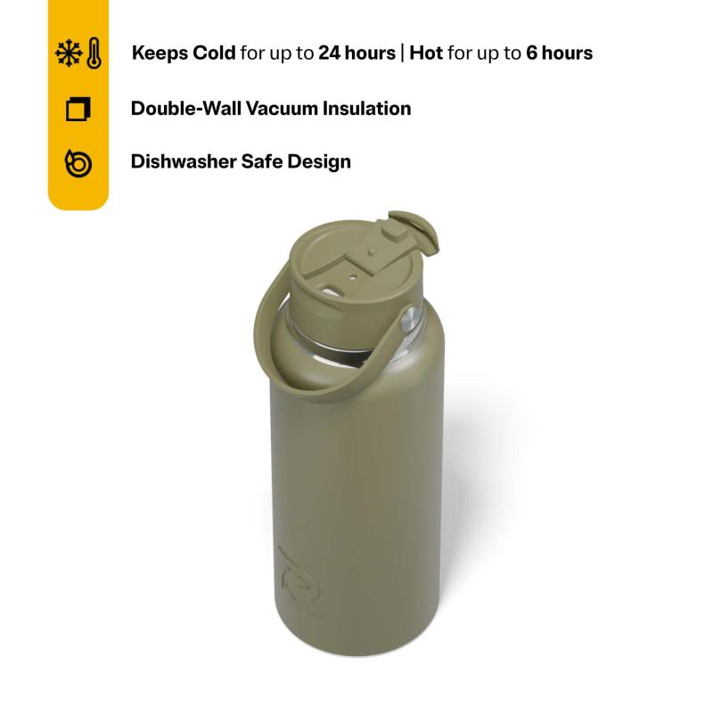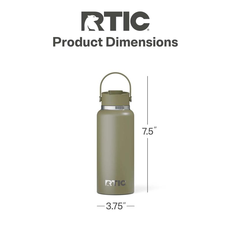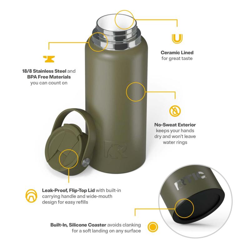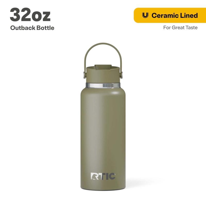 RTIC 32 oz Ceramic Lined Insulated Outback Water Bottle, Leak Resistant, Olive