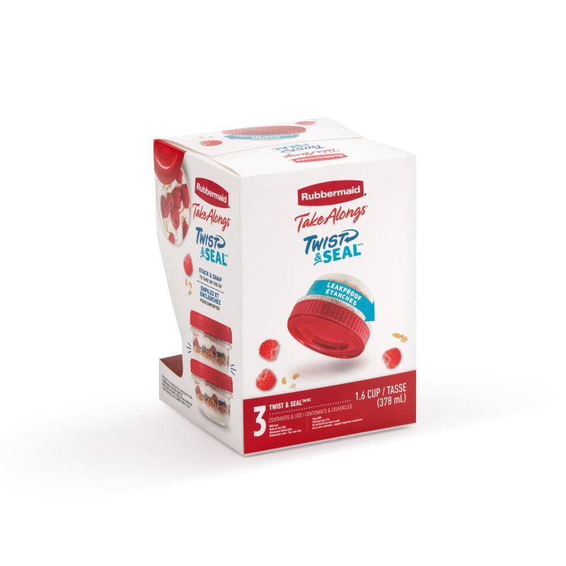 - Rubbermaid TakeAlongs Twist & Seal 1.6-Cup Food Storage Containers, Ruby, 3-Pack