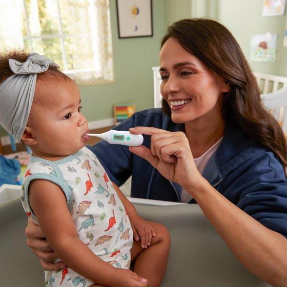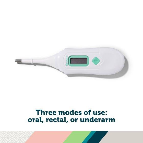 The Safety 1st 3-in-1 Nursery Thermometer lets you choose the best way to check temperature when your child isn’t feeling well. It can be used orally, rectally, or under the arm and beeps when the reading is complete. The flexible tip is more comfortable for baby during a rectal reading and features an over-insertion gauge that gives parents added confidence while checking for fevers, so that they can focus on helping baby feel better. The 3-in-1 Nursery Thermometer includes both a protective storage case and a long life battery.