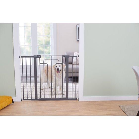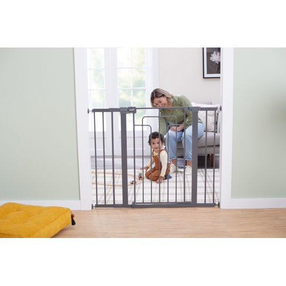 Now that your baby is on the move, the Safety 1st Contemporary Tall-and-Wide Gate makes it easy to create child-friendly spaces within your home. It has a modern finish that blends with your home décor. This gate makes installation quick and easy, using only one screw. The additional width and height fit many different sizes of doorways, hallways, and at the bottom of the stairs. Great for homes with pets as well.