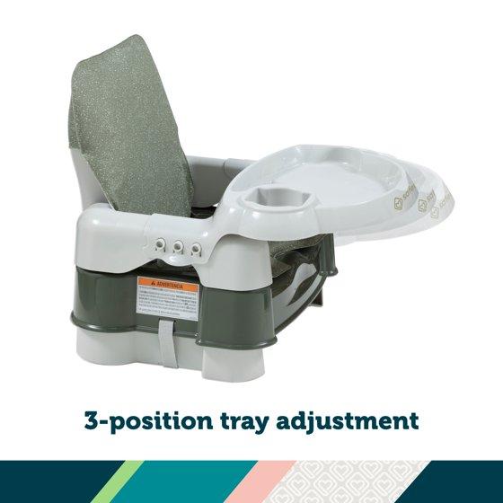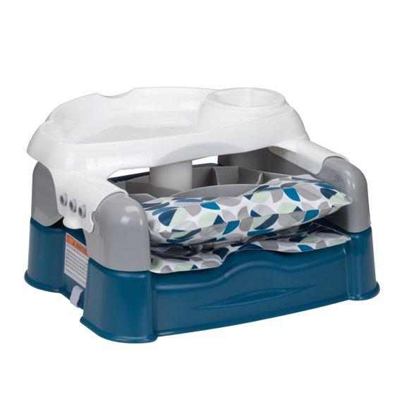 With its 2-level height adjustment and 3 tray positions, the Deluxe 5-in-1 Sit, Snack & Go Convertible Booster Seat fits children from 6 months to 4 years; up to 50 lbs. It starts with a full seat that includes armrests and a tray for baby, and transitions through the different modes to fit your little one as they progress from spoon-fed baby food to eating meals at the table. In each mode, the portable booster folds for easy storage, making it a great option for parents on the go. It also features a dishwasher-safe tray and easy-wipe seat pad for quick and easy clean-up.