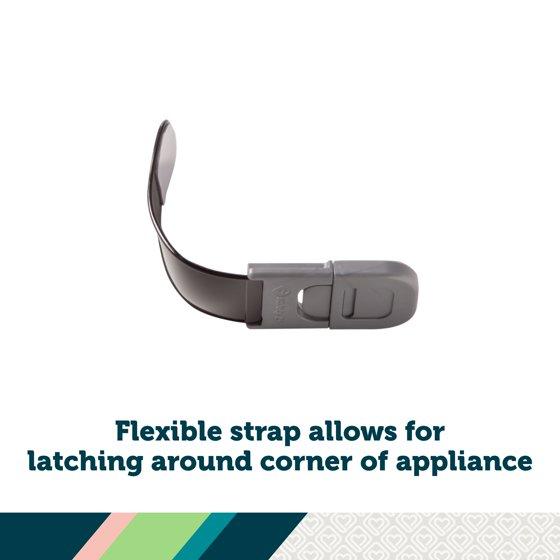 - Flexible strap allows for latching around corner of appliance