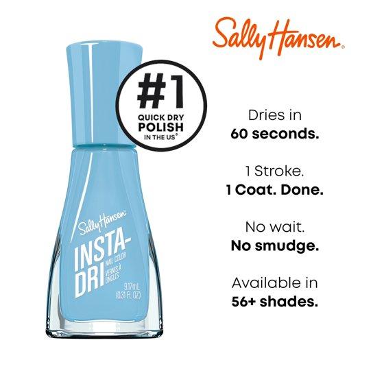 - Manicure in a Flash: the Sally Hansen Insta-Dri nail polish dries in 60 seconds. 1 Stroke. 1 Coat. Done. No wait. No smudge.