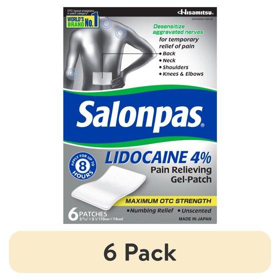 (6 pack) Salonpas Lidocaine Pain Relieving Gel-Patch with Maximum Strength Lidocaine, 6 Count