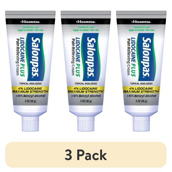 (3 pack) Salonpas Maximum Strength Lidocaine 4% Pain Relief Cream, 3oz
