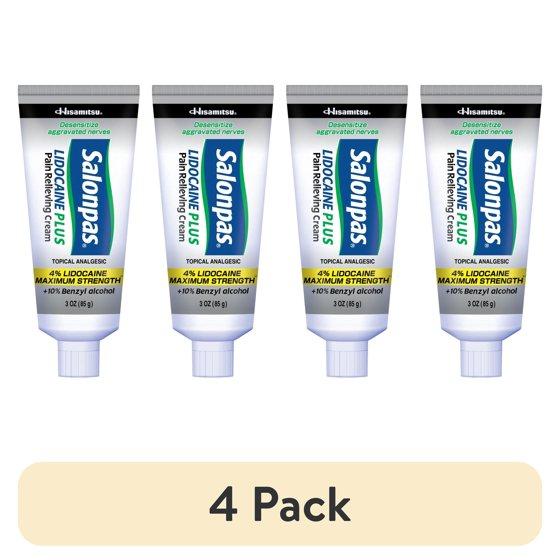 (4 pack) Salonpas Maximum Strength Lidocaine 4% Pain Relief Cream, 3oz
