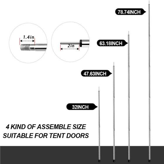 - Adjustable Design- Our camping tent poles are available in 4 installation lengths:32",47.63",63.18",78.74", and only 16.5" when stored, you can carry the appropriate number of sections according to the type of tent, and we will also include a black bag, convenient for you to carry around