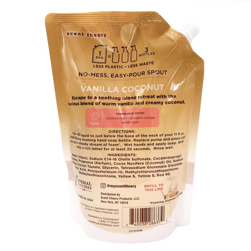 Scent Theory Foaming Hand Soap Refill, Vanilla Coconut, 33 fl oz Pouch