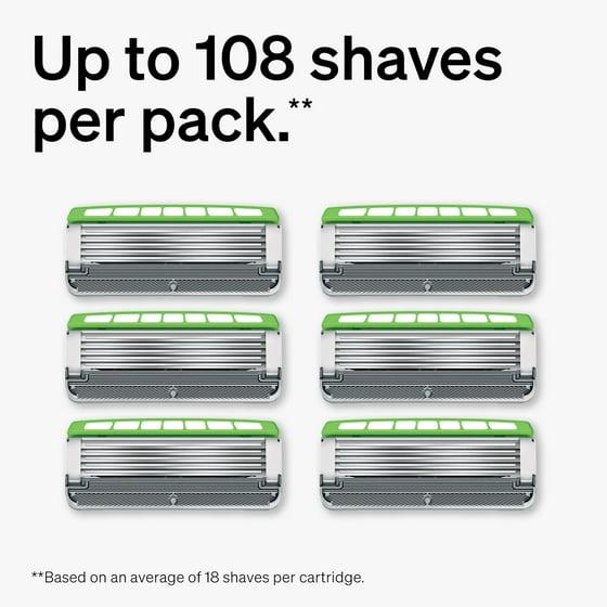 - LONG-LASTING BLADES – Utilizing our most durable blades for a close, long-lasting shave, these 6 Schick Hydro refill cartridges will get you up to 108 shaves per pack**. **Based on an average of 18 shaves per cartridge.