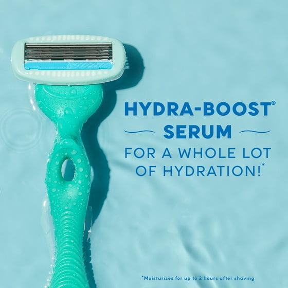 - HYDRA-BOOST SERUM + ALOE – Smooth-gliding, sensitive skin razor for women that provides moisture for up to 2 hours after shaving for touchably soft skin.