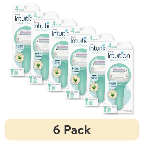 (6 pack) Schick Intuition 4-Blade Sensitive Care Women's Razor Handle Plus 2 Manual Razor Cartridge Refills