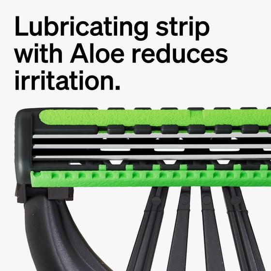 - DERMATOLOGIST-TESTED – Our sensitive razor is gentle on skin and has a lubricating strip, with aloe, that protects skin from irritation, for a shave your skin will enjoy.