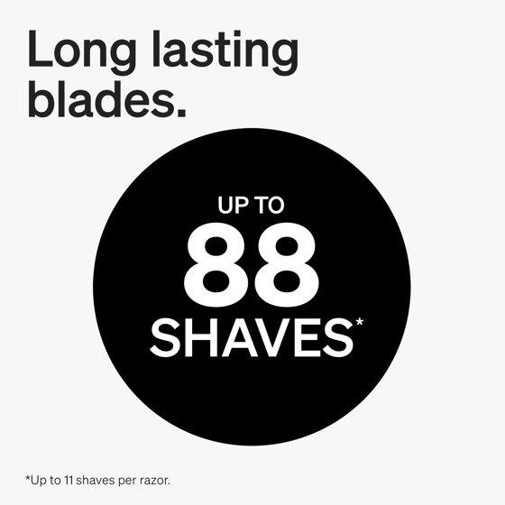 - LONG-LASTING BLADES – Each razor lasts up to 11 shaves, for up to 132 shaves per pack.