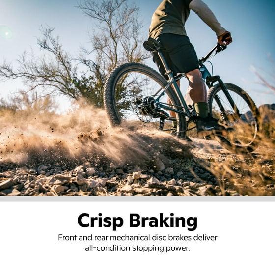 - Mechanical disc brakes deliver weatherproof stopping power with 160 mm rotors.