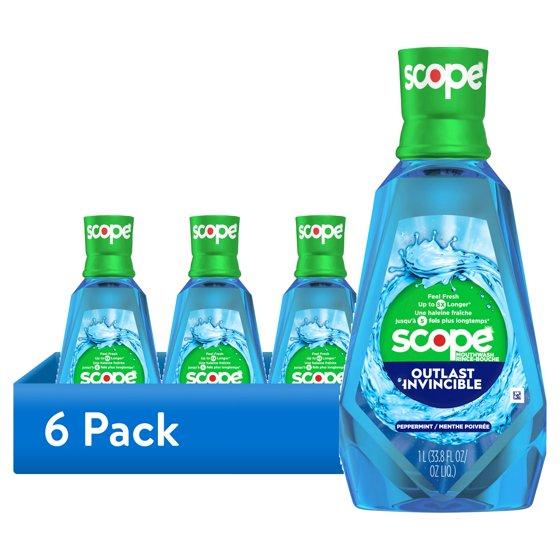 (6 pack) Scope Mouthwash, Outlast, Peppermint, 1L