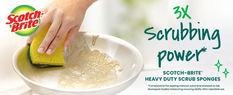 - THREE SCRUBBING SPONGES: This pack of Scotch-Brite Heavy Duty Scrub Sponges includes three sponges.