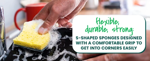 - FLEXIBLE, DURABLE, STRONG: These dish sponges for dishes are S-shaped for a comfortable grip while getting into corners easily.
