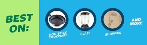 - Safe on: Non-stick cookware, countertops, showers and tubs and more