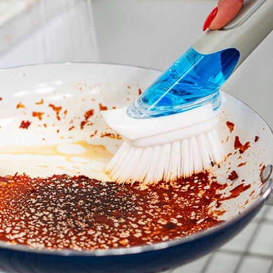 - It contains durable nylon bristles that are safe on nonstick cookware