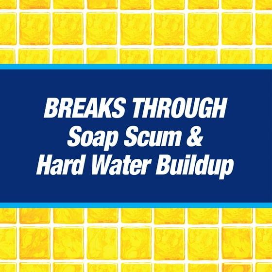 - NO HARD SCRUBBING. Cleaning your bathroom can be difficult. That’s why this easy bathroom cleaner tackles tough soap scum and hard water buildup from calcium and lime in a formula that won’t scratch bathroom surfaces.