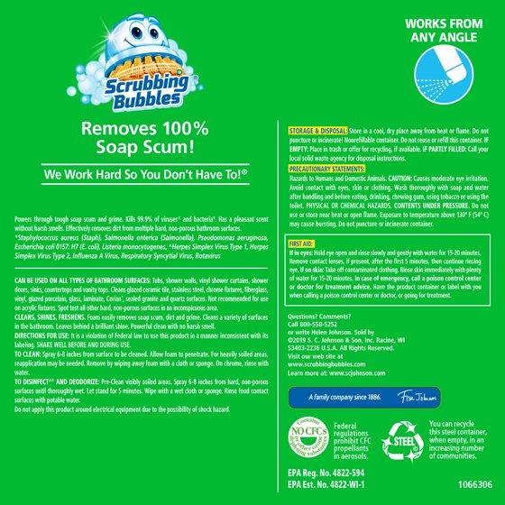 - Scrubbing Bubbles Bathroom Grimefighter Aerosol is a disinfectant Cleaner with a penetrating foam that takes on grime wherever it hides and kills 99.9% of viruses and bacteria