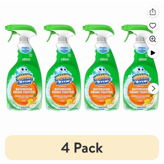 (4 pack) Scrubbing Bubbles Disinfectant Bathroom Grime Fighter Spray, Citrus, 32 fl oz
