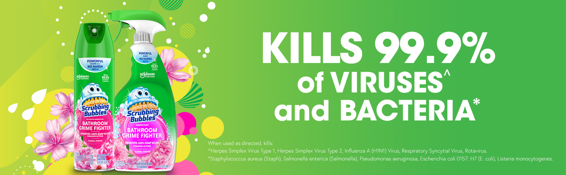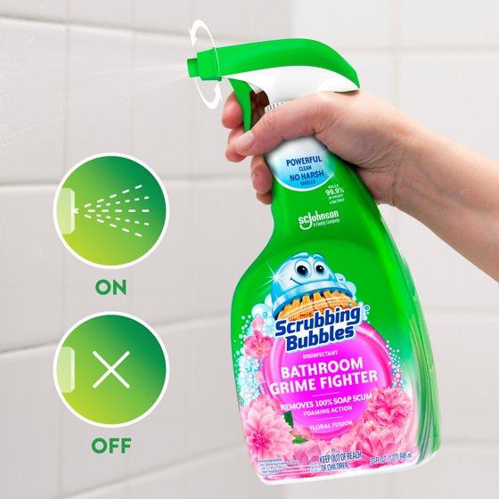 - Scrubbing Bubbles Bathroom Grime Fighter Spray is a disinfectant cleaner with a penetrating foam that takes on grime wherever it hides and kills 99.9% of viruses and bacteria