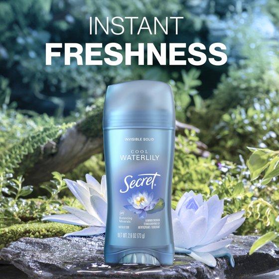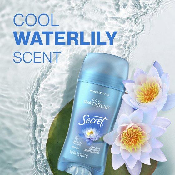 - Stay dry and unstoppably fresh with Secret Invisible Solid Antiperspirant/Deodorant, Waterlily Scent
