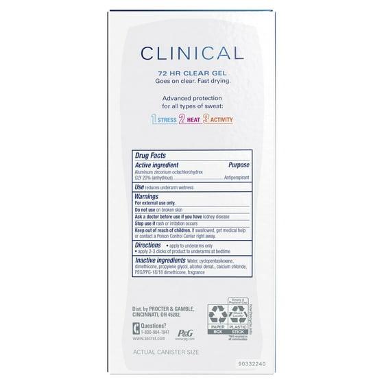 - Secret Clinical Gel Antiperspirant and Deodorant for Women Clear Gel, Completely Clean, 2.6 oz