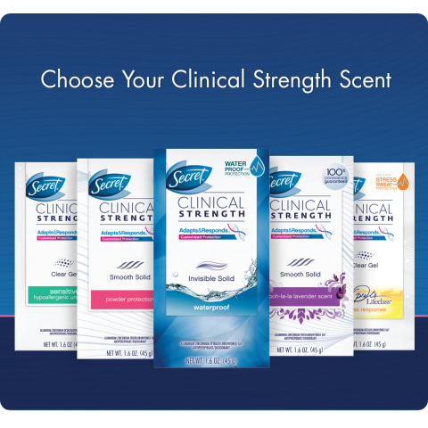 Secret Clinical Strength has Adapts&Responds Technology that senses your sweat levels throughout the day, adapting the level of protection, and helps to stop odor before it starts. Secret Clinical Strength Invisible Solid—incredible protection, no matter what the day may bring.
