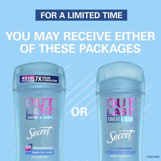 Secret Outlast Clear Gel Antiperspirant Deodorant for Women, Completely Clean, 3.4 oz