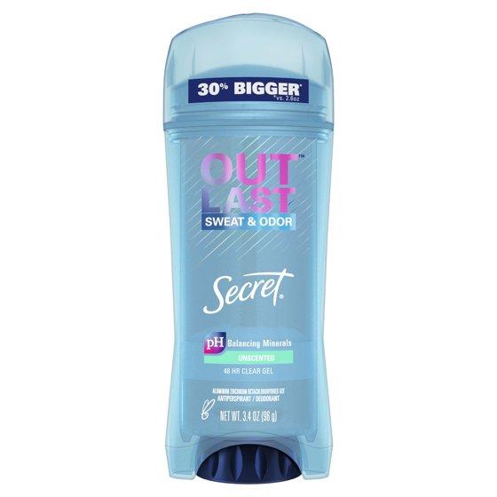 Secret Outlast Clear Gel Antiperspirant Deodorant, Unscented, 3.4 oz