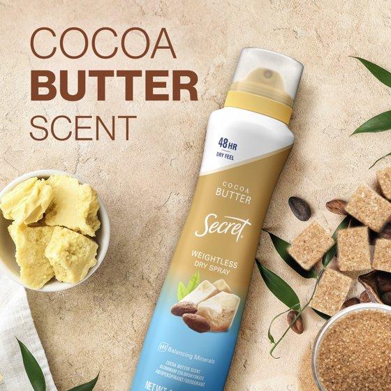- Secret Weightless Dry Spray Antiperspirant & Deodorant for Women, Cocoa Butter Scent, 4.1oz