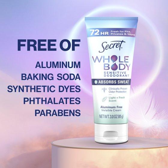 - Secret Whole Body Aluminum-Free Dry Feel Cream and Absorbs Sweat, Deodorant Cream for Women, Light & Fresh Scent, 3.0oz
